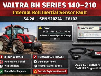 This guide explains how to diagnose and resolve the Valtra BH Series 140–210 internal roll inertial sensor fault, identified by SA 28 – SPN 520224 […]
