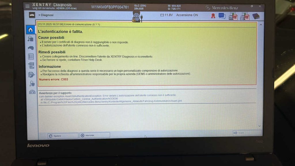 We received an inquiry from a customer who reported encountering the following error when using MB Star C6 to diagnose a 2025 GLC W254: